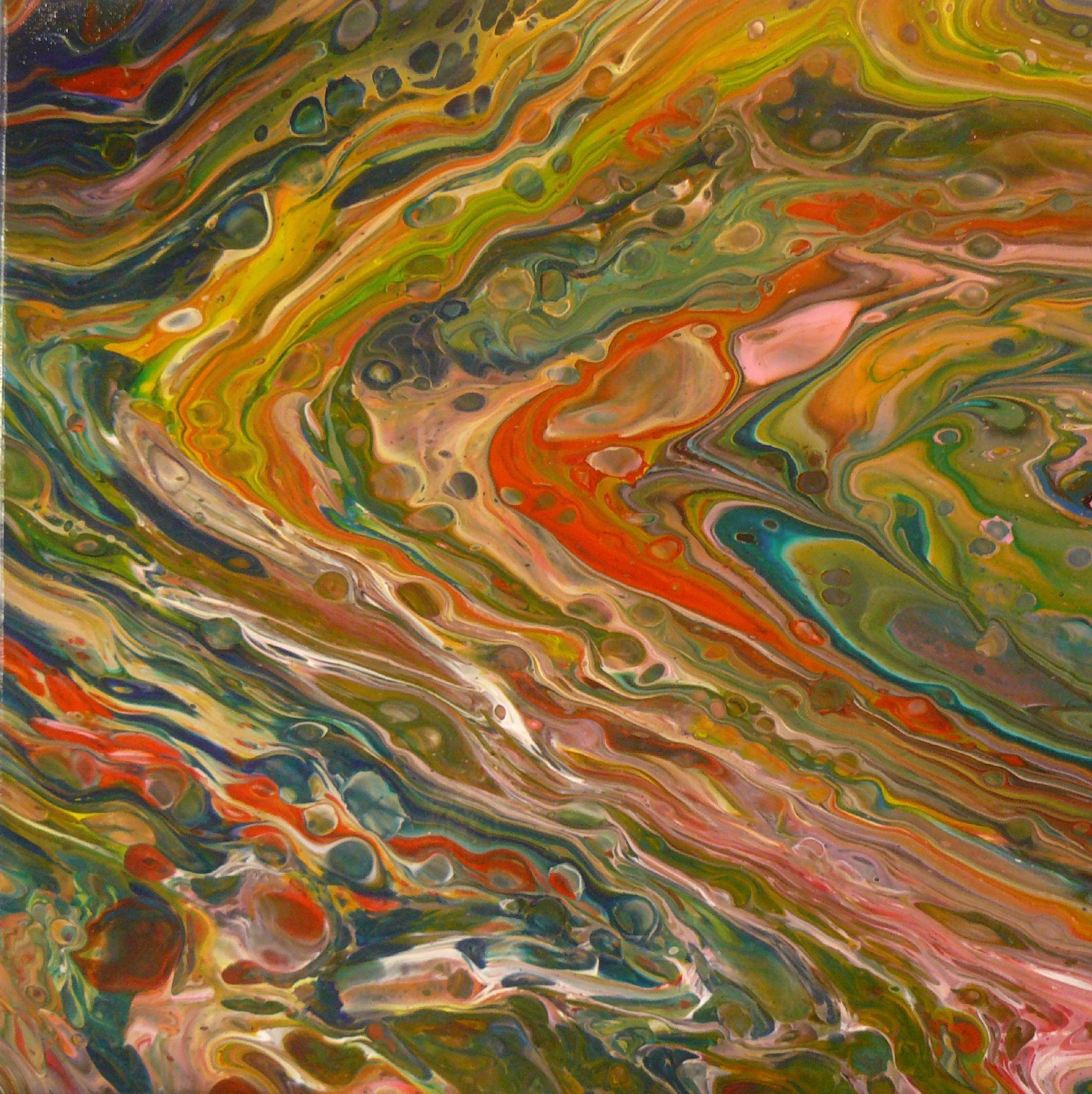 Laisser les pigments se déchaîner sur la toile tout en essayant de les maîtriser, de les canaliser, conduit à de magiques réalisations aux mélanges de couleurs improbables et sublimes. Celle-ci est la 107ème.