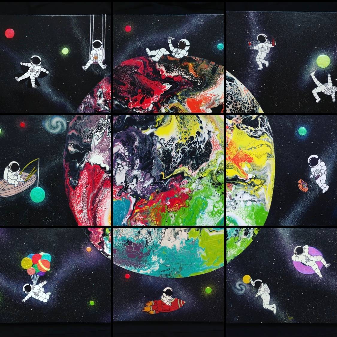 Cela ne représente en rien la situation actuelle sur la planète. Je dirais plutôt que mon idée était de mettre en avant les différentes choses à faire si j’étais en lévitation dans l’espace.